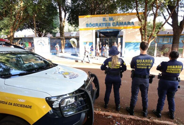 Durante os períodos matutino, vespertino e noturno, a Guarda Municipal de Dourados faz o trabalho da ronda escolar em diversas regiões da cidade. As ações