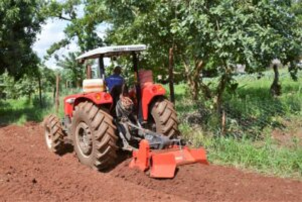 #ParaTodosVerem A imagem de capa mostra um trator em terreno sendo conduzido por um produtor. A imagem interna mostra o produtor capinando uma horta de alfaces.