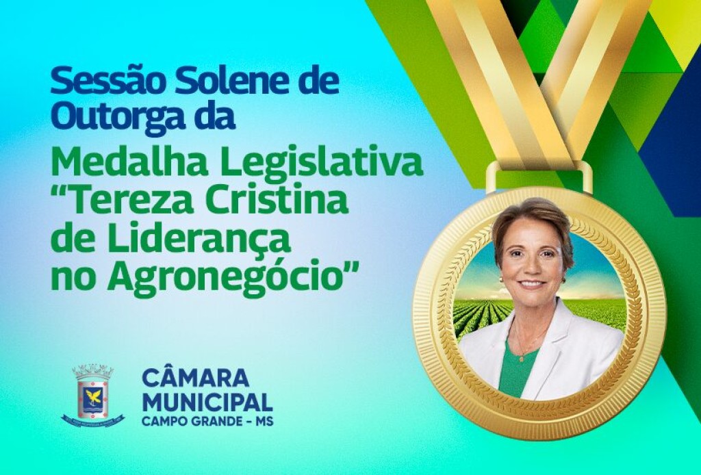 A Câmara Municipal de Campo Grande promove, nesta quinta-feira, dia 10, Sessão Solene de outorga da Medalha Tereza Cristina de Liderança no Agronegócio. O evento acontece a partir das 16 horas, no estande da Casa de Leis na Expogrande, no Parque de Exposições Laucídio Coelho.