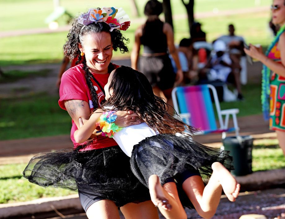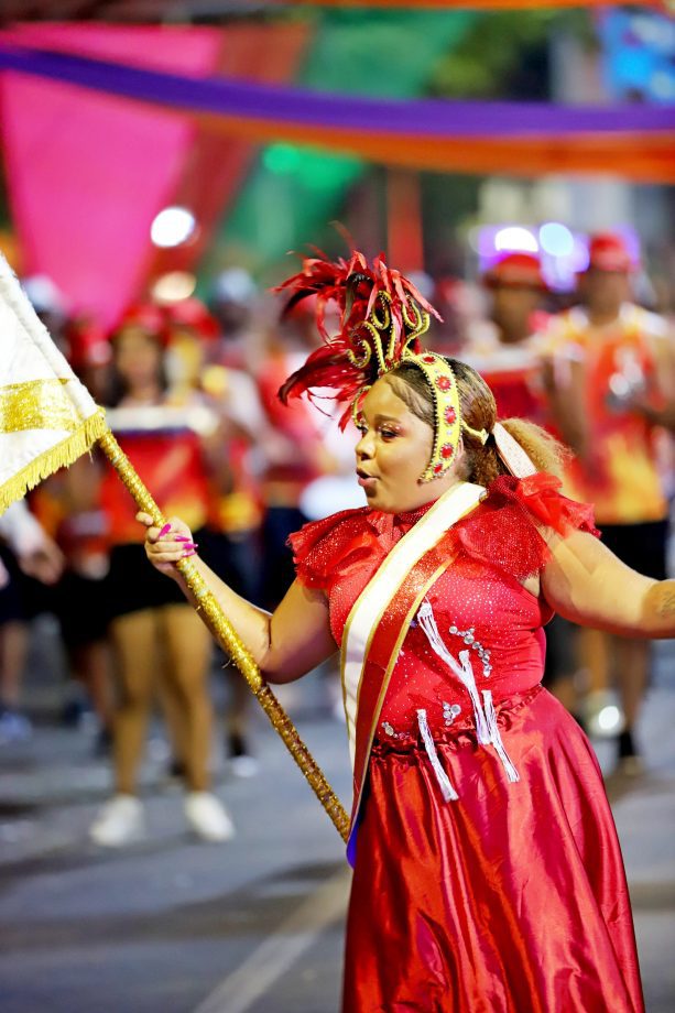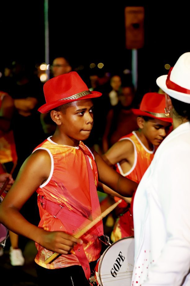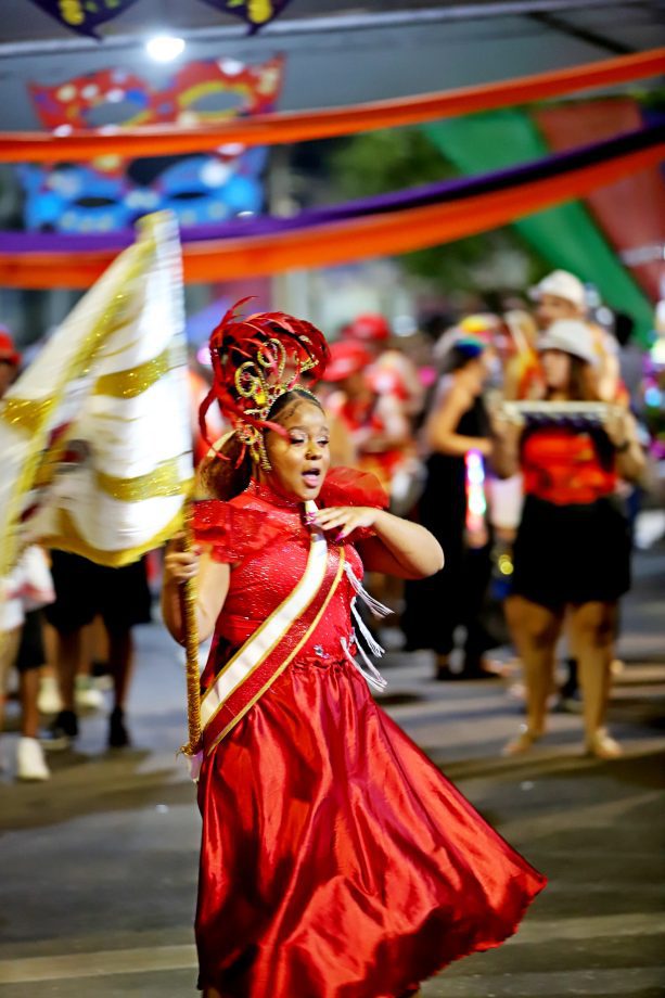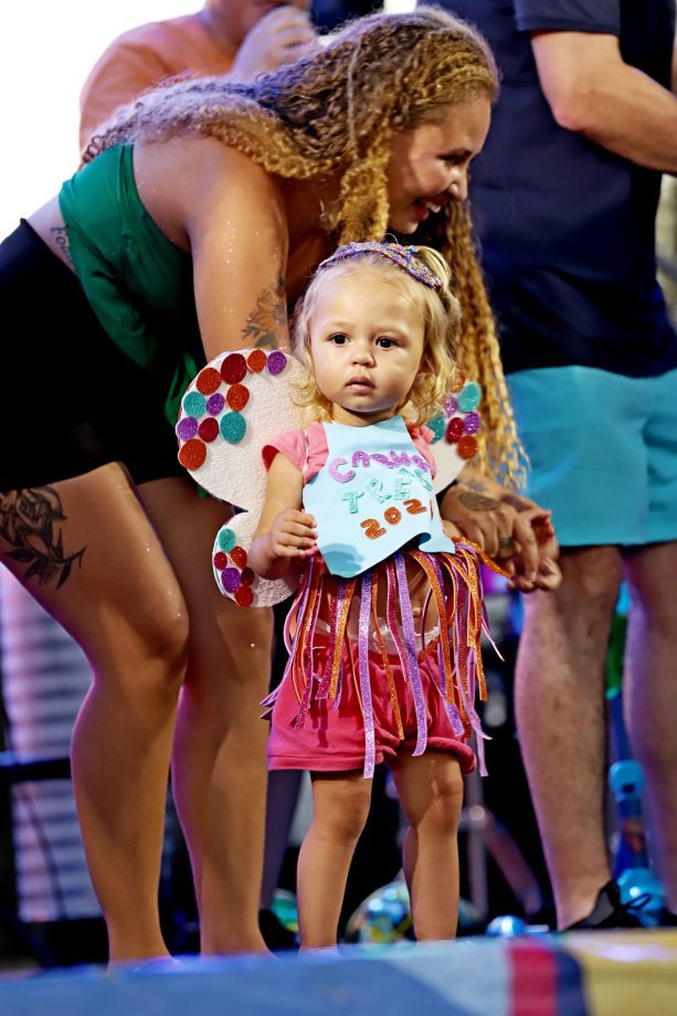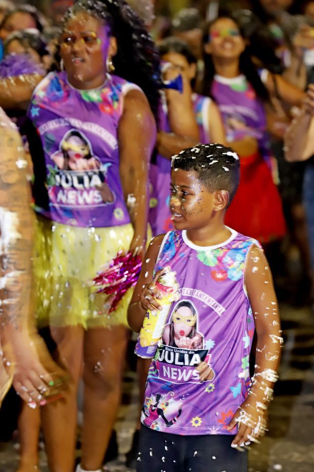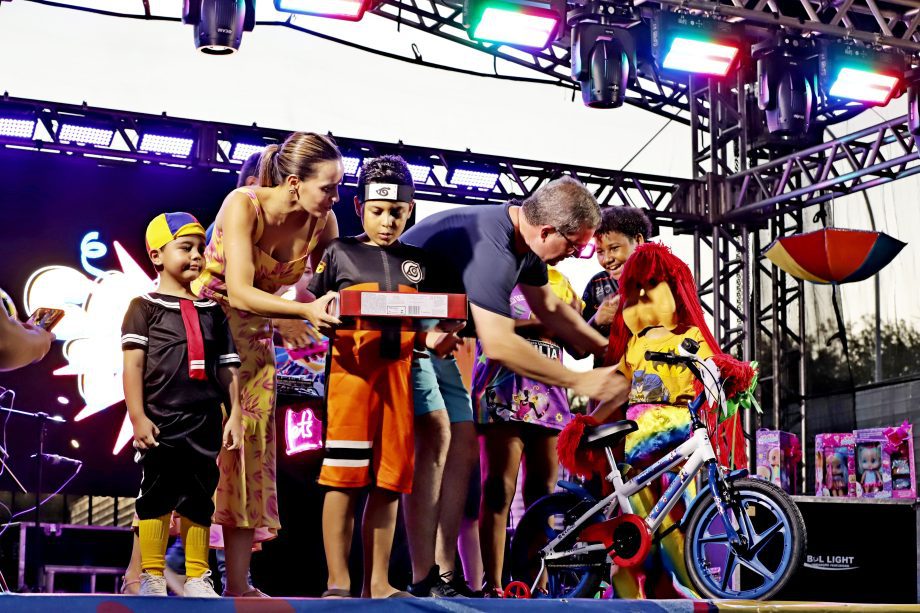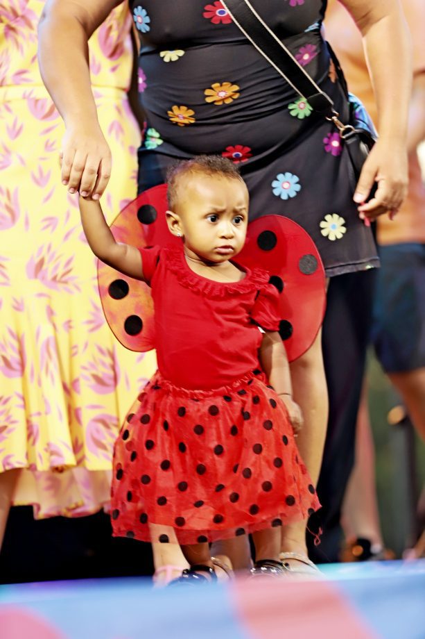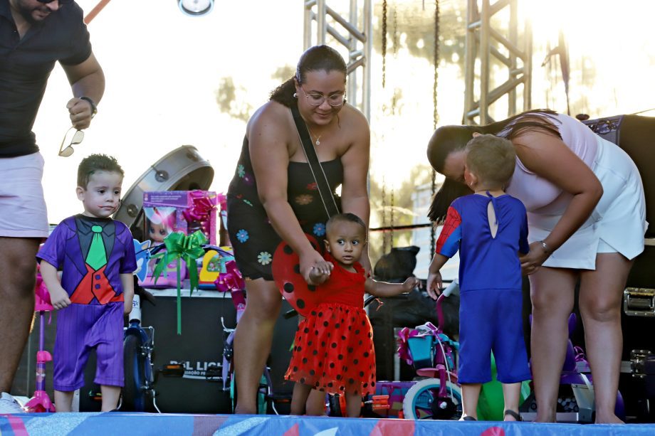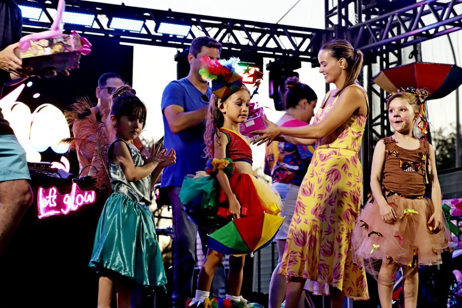 No domingo, a festa continuou com atrações para as crianças, incluindo recreação e o Concurso de Fantasia Infantil, que encantou o público com a criatividade dos pequenos foliões. À noite, a animação ficou por conta da música e novamente do desfile dos blocos, mantendo o ritmo contagiante da celebração.