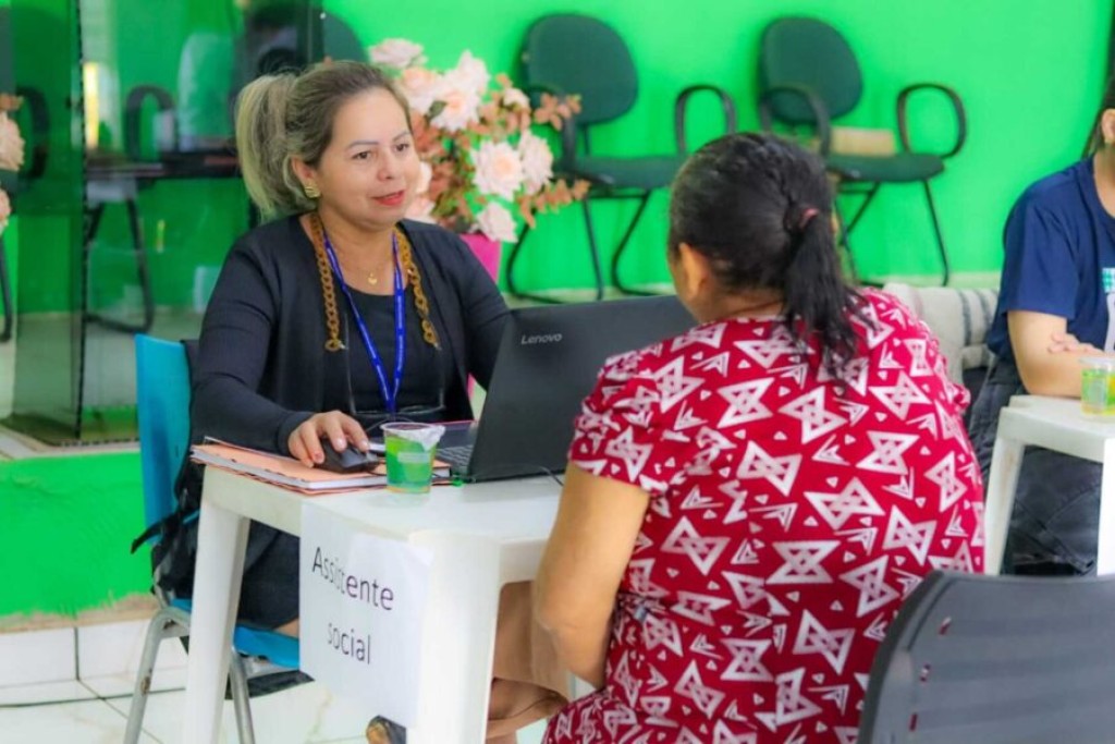 A estrutura montada chamou a atenção: de um lado, uma equipe com profissionais de atendimento jurídico organizava as senhas para receber quem buscava orientação sobre causas trabalhistas, previdenciárias e questões familiares. Ao lado, especialistas de assistência social conversavam com famílias, oferecendo informações sobre programas públicos e direitos sociais.