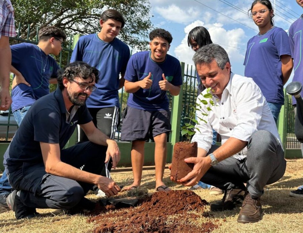 A Semana da Agroecologia, proposta pelo vereador Landmark Rios (PT), foi aberta nesta segunda-feira (29) na Escola Estadual Professora Neyder Suelly Costa Vieira, no bairro Aero Rancho, em Campo Grande. O evento contou com o plantio e a entrega de mudas de pitanga, goiaba e maracujá, além de uma palestra e momentos de troca de experiências sobre práticas de agricultura sustentável, em que os alunos puderam conhecer de perto como funcionam processos ligados ao cultivo e ao meio ambiente.