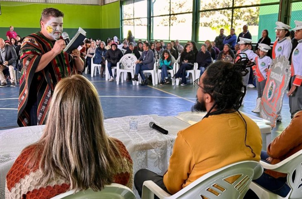 “Tudo isso que vocês estão vendo aqui – essa galera reunida, essas autoridades, bandas, artistas, professores, diretores – está aqui porque queremos servir vocês. Vocês estão diante não de super-herois, mas de pessoas comuns, com limitações e emoções como vocês, mas que também têm capacidades e habilidades que se uniram para pensar a vida do estudante em sua integralidade. Isso é cidadania: reconhecer que temos realidades, famílias, culturas e visões diferentes – e que precisamos aprender a conviver com essas diferenças”, apresentou Jessé.
