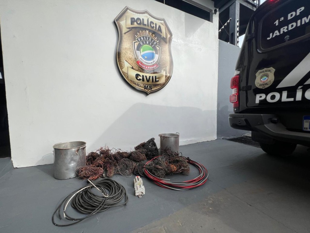 A Polícia Civil do Mato Grosso do Sul, por intermédio da 1ª Delegacia de Jardim, realizou nesta quinta-feira (23) uma operação voltada ao combate de furtos e à receptação de fios de cobre e outros materiais metálicos no município. Durante a ação, foi cumprido mandado de busca e apreensão em um estabelecimento localizado na Rua Coronel Stuck, onde os policiais encontraram 43,9 quilos de fios de cobre queimados, uma extensão de energia, três disjuntores e panelas de alumínio, todos sem comprovação de origem.