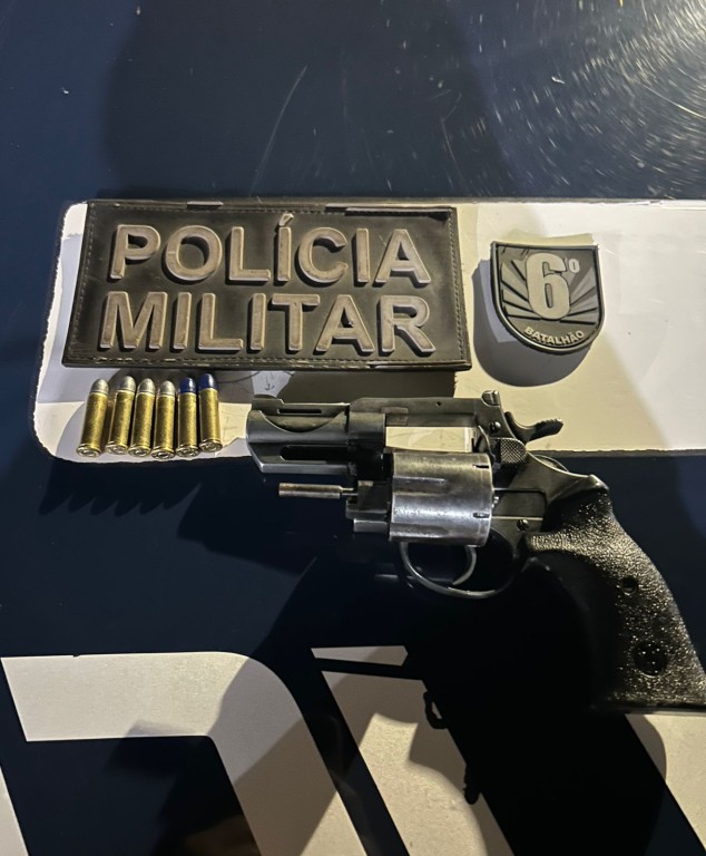 Durante a abordagem, a suspeita confirmou que houve uma discussão com o filho, porém demonstrou nervosismo quando questionada sobre a arma. Ao vistoriarem o veículo que estava estacionado em frente à residência, os policiais localizaram, à vista pelo vidro da janela, um revólver calibre .38 no interior do carro, além de dois aparelhos celulares sobre o banco do passageiro.