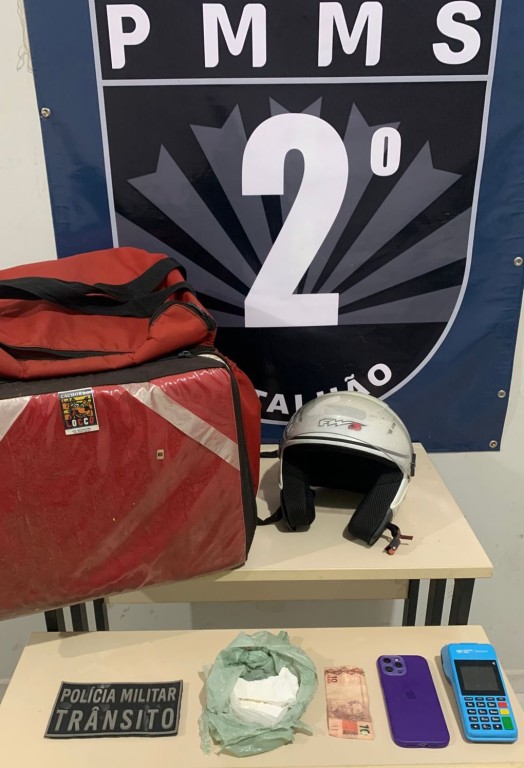 Nesta sexta-feira, por volta das 17h30, uma guarnição do Pelotão de Trânsito do 2º BPM durante patrulhamento ostensivo pela área central realizou a abordagem policial de um motociclista de 26 anos, onde durante vistoria em sua mochila térmica de entrega “BAG”, os policiais vieram a localizar uma sacola contendo cocaína (pesando 153 gramas), que segundo o abordado seria comercializada após fracionamento.