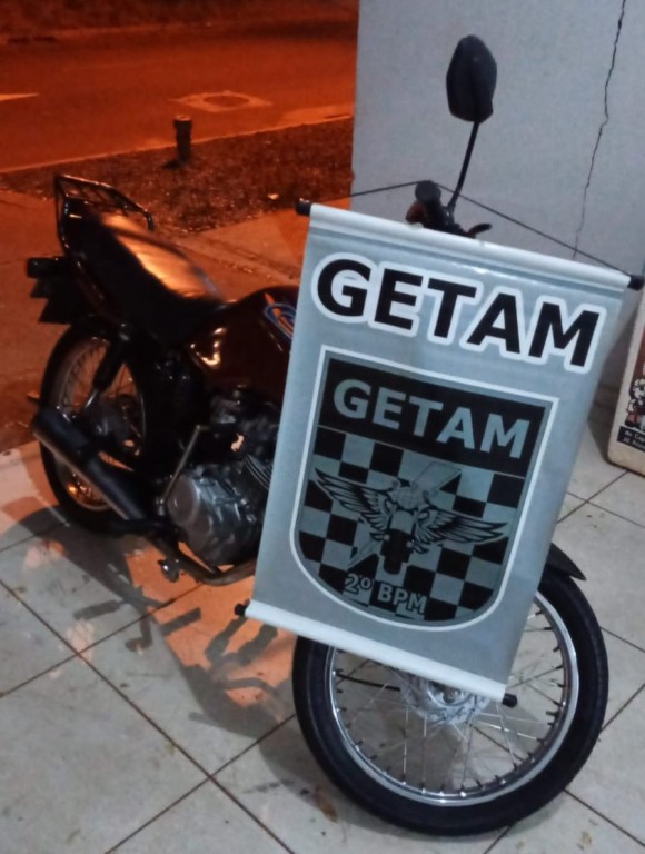 Nesta terça-feira, por volta das 23h30, uma guarnição do GETAM do 2º BPM durante policiamento no bairro Jardim Paranapungá, quando na rua Rui José da Costa realizou a abordagem policial de uma motocicleta Honda/CG 125, de cor vermelha, onde durante checagens foi constatado que o veículo se encontrava com o número de identificação veicular (chassi) raspado, sendo verificado ainda que a placa que se encontrava afixada na motocicleta pertence a uma motocicleta de cor verde, de Aparecida de Goiânia/GO.