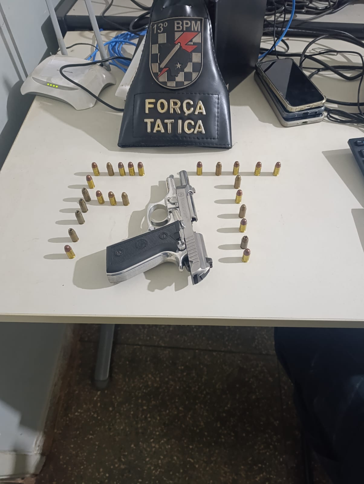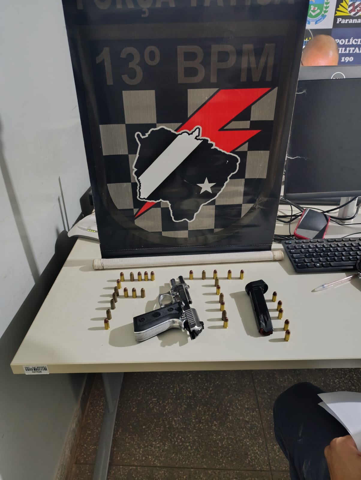 • 1 pistola calibre .380, carregador e 30 munições de diversos fabricantes;
