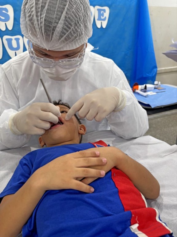 A programação incluiu diversas atividades educativas e interativas com os alunos da escola. O Dia D da Escovação Supervisionada trouxe oficinas lúdicas, como apresentações teatrais e dinâmicas, para incentivar hábitos saudáveis de higiene bucal. Crianças autorizadas pelos pais participaram de sessões de escovação supervisionada e receberam orientação sobre cuidados odontológicos, reforçando a importância da prevenção para a saúde dos dentes.