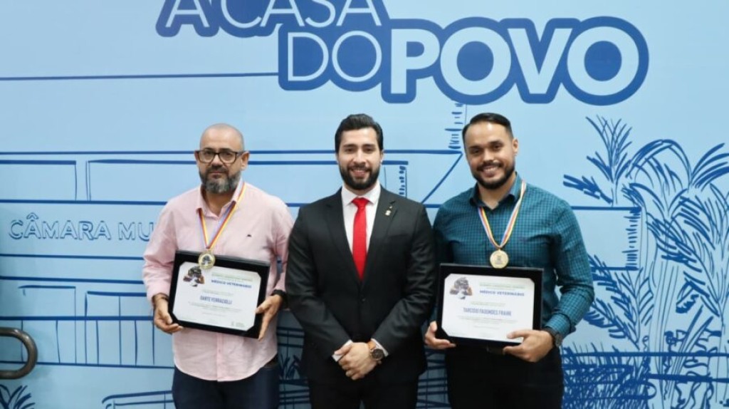 Em comemoração ao Dia do Médico Veterinário, a Câmara Municipal de Campo Grande realizou, nesta quarta-feira (10), uma Sessão Solene para entrega da Medalha Legislativa “Olímpio Crisóstomo Ribeiro”. Entre os homenageados, receberam a honraria os médicos veterinários Dr. Tarcísio Fagundes Fraire e Dr. Darte Ferraciolli, indicados pelo vereador Fábio Rocha (PP).